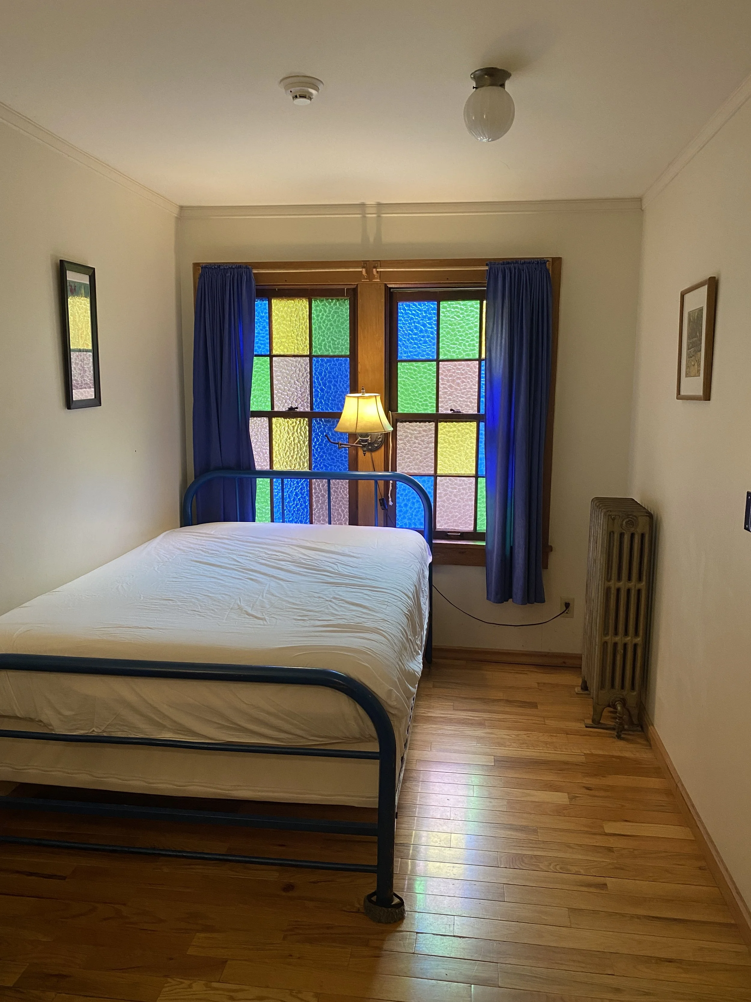 The Bell Hotel is a unique, standalone room located near the Lodge and hot springs. This quiet space includes one queen bed and geothermal radiator heat, and is set apart from other guest accommodations. Its location near the Breitenbush kitchen means guests may enjoy the comforting aromas of meals being prepared.